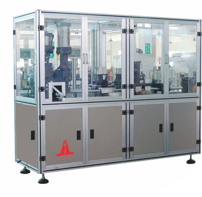 本機(jī)適用于汽車起動(dòng)電機(jī)電樞圓線繞組的自動(dòng)送料、自動(dòng)去漆皮、自動(dòng)定長切斷、自動(dòng)成形的一種專用設(shè)備。采用三菱PLC控制,觸摸屏或液晶顯示器設(shè)定參數(shù),電動(dòng)飛刀自動(dòng)刮漆皮,自動(dòng)完成定長送線,自動(dòng)校直,四刀切斷,自動(dòng)成形,調(diào)整方便,操作簡單,一人可操作多臺設(shè)備。