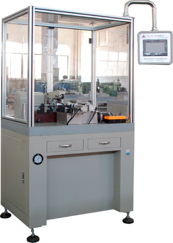 本機(jī)適用于汽車發(fā)電機(jī)集電環(huán)的高精度車削。采用三菱PLC控制,粗車刀和精車刀分別車削,變頻調(diào)速器無級(jí)調(diào)速,采用硬質(zhì)合金“V”形塊支承轉(zhuǎn)子軸同心度,操作方便。