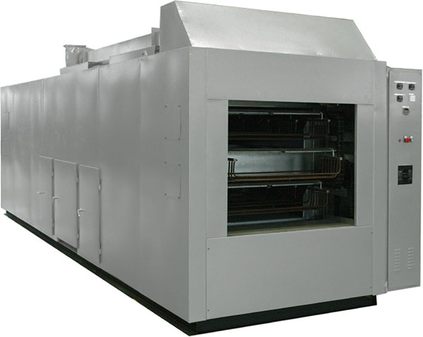 適用于感應電機定子、電器線圈、小型變壓器的自動浸絕緣漆并烘干處理。采用吊籃連續(xù)式工作方式,工件按設定工藝技術參數(shù),自動完成預熱、浸漆、滴干、凝膠、固化工序,三菱PLC程控,觸摸屏顯示,操作方便,生產(chǎn)效率高。