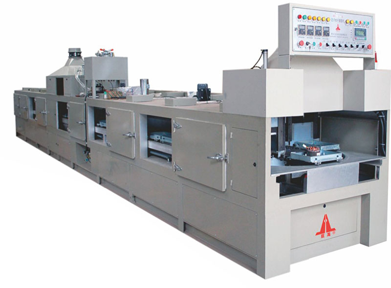 本機廣泛應(yīng)用于各種感應(yīng)電機、家用發(fā)電機定子或轉(zhuǎn)子的滴漆烘干處理。采用三菱PLC程控,中文液晶顯示,用蠕動泵壓縮供漆管的方法來啟停滴漆,滴漆流量穩(wěn)定可控,采用鏈輪旋轉(zhuǎn)運動,使鏈條拖動裝有定子安裝工裝的若干個小車產(chǎn)生水平步進移動,定位輸送,移位準確,定子不轉(zhuǎn),滴漆頭往復(fù)旋轉(zhuǎn),裝夾上下工件極為方便,有效保護鐵芯和引線不沾漆。有預(yù)烘、凝膠、固化烘道組成,滴漆時間和烘干時間可調(diào),操作簡單方便。
