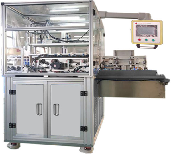 This machine is suitable for automatic winding of motor rotor. It adopts four-station synchronous winding structure. It consists of two sets of main servo motor of one for four type, one set of index servo motor one for four type and PLC control system. Manually put the workpiece, the slot is automatically positioned, rotors are automatically pulled into the winding position , the machine automatically winds, indexs, hooks, clamps, and exits after winding. The workpiece is manually removed, and the other set of rotors is automatically inserted into the positioning and then automatically pulled into the winding position. After completion, the machine automatically exits and manually removes the workpiece.