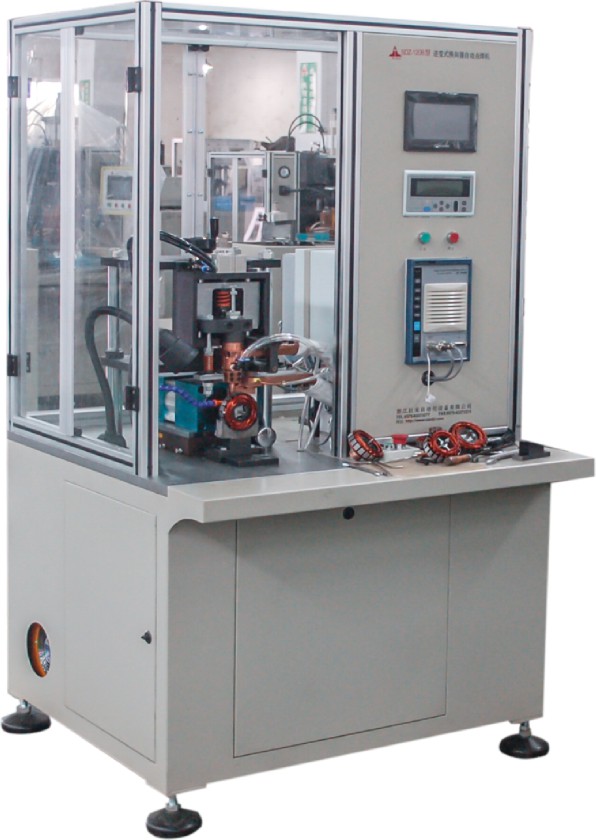 The machine is designed for motor commutator and armature winding connection of a special welding equipment.The use of imported PLC controller and touch screen display control welding movements in a single solder joint can be set pressure, the configuration Miyaji inverter welding control, constant current, constant power, constant voltage control, a variety of welding specifications Number, multi-section power mode. With the current slow rise, slow down function. Can be selected by the reasonable choice of welding current to achieve high-quality welding, the workpiece mechanical positioning on the slot, can be set to the angle compensation, with built-in cooling water tank, import solenoid valve control welding cylinder, fast and stable, all actions once completed Simple, superior performance, high-quality welding.